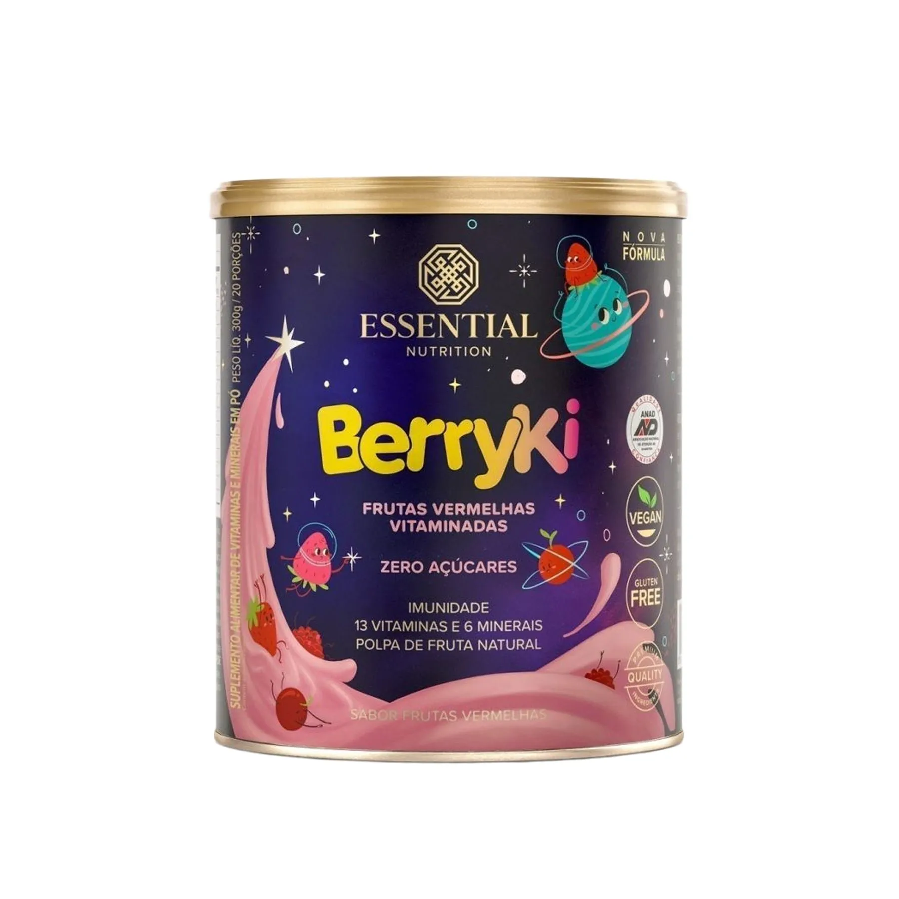 BerryKI ESSENTIAL é um Multivitamínico com polpas de frutas vermelhas e uma seleção de 13 vitaminas e 6 minerais de alta qualidade e absorção. Formulado com adoçantes naturais, é uma excelente alternativa às bebidas tradicionais com alto teor de açúcar. Seu sabor é tão incrível que você esquece que ele é um multivitamínico e vai misturá-lo em iogurtes, vitaminas ou preparar as mais variadas receitas. BerryKI não possui adição de corantes, conservantes ou açúcar, e seus adoçantes são 100% naturais. É uma ótima opção para o café da manhã ou lanche das crianças e também dos adultos. BerryKI pode também ser consumido por veganos e vegetarianos. Seu filho come mal? BerryKi é uma opção nutritiva para café da manhã e lanche, podendo substituir bebidas tradicionais com alto teor de açúcar, ao mesmo tempo, em que fornece vitaminas e minerais de que as crianças tanto precisam, com apenas 33 calorias por porção.Você fica mais tranquila quando seu filho tem os nutrientes de que precisa, mesmo sem comer tudo aquilo que você gostaria que ele comesse.